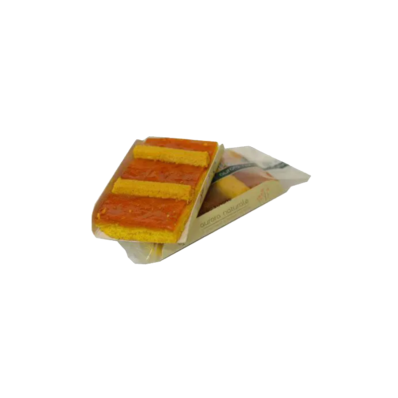 Pasta frolla 65%: crema di riso, farina di mais, zucchero, tuorlo d'uovo,olio d'oliva; preparato di albicocche 35%: sciroppo di glucosio-fruttosio, purea di albicocche, zucchero; addensante: pectina addizionata di pirofosfato di sodio ed alginato di sodio; correttori di acidità: acido citrico e citrato di calcio; conservante: sorbato di potassio; colorante: estratto di paprika, aromi.