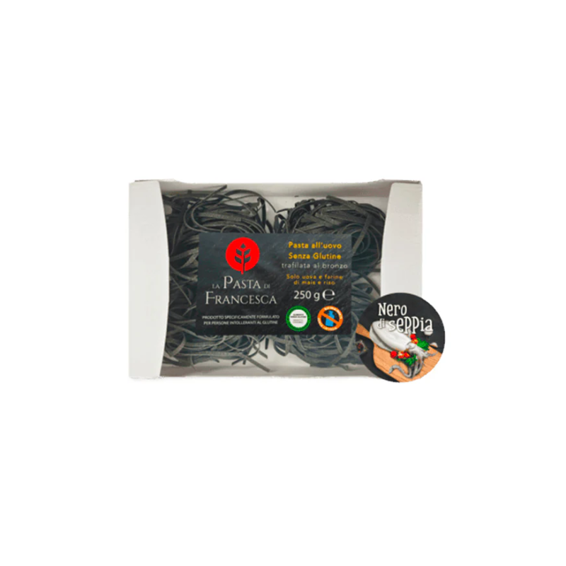 Farina di Mais, Farina di Riso, Nero di Seppia 2%, Acqua, Sale, conservante (E202